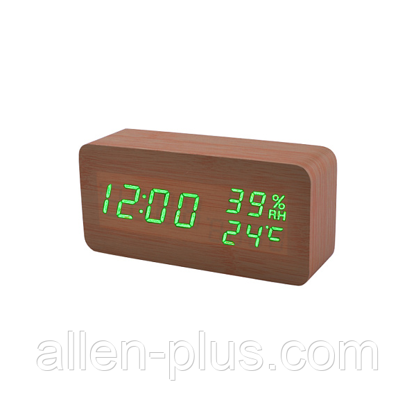 Годинник мережевий VST 862S-6, температура та вологість, темне дерево з білою підсвіткою (USB)